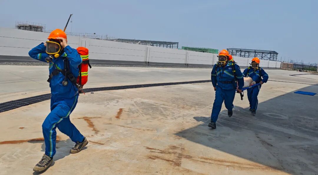 环氧乙烷泄漏演练、江苏基地甲醇罐区泄漏着火演练均采用指挥中心与现场指挥部联动模式,依托融合通信等技术手段实现高效协同指挥与实时联动处置。演练过程紧密协作国家专业救援队,创新应用AI评估表精准识别改进点。演练聚焦实战,严格执行泄漏控制、人员疏散等关键步骤进行。通过演练不仅检验了员工的处置技能,验证智能设备、消防设施的可靠性。实战练兵,巩固防线,为公司安全运行保驾护航。